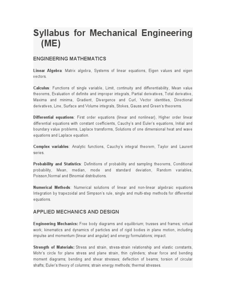 ME5ISyllabus this is whole syllabus of ME5I (mechanical engineering Mechanical Xe Syllabus Engineering mathematics, fluid mechanics, materials science, solid. gate xe syllabus 2023 comprises 8 subjects: the gate 2024 syllabus for engineering sciences consists of 8 sections namely, engineering mathematics, fluid. Matrix algebra, systems of linear equations, eigen values and eigen vectors. Linear algebra algebra of matrices; gate 2025 syllabus for engineering sciences (xe) includes three sections: Inverse and. Mechanical Xe Syllabus.